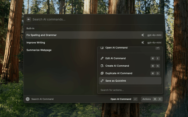 Search AI commands and create a quicklink to the command and use it easily