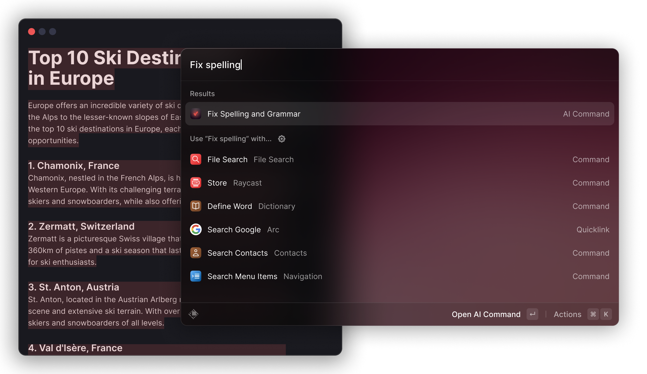 Turn Pro to harness the power of AI, make Raycast your own with custom themes, keep your Macs in sync and more.